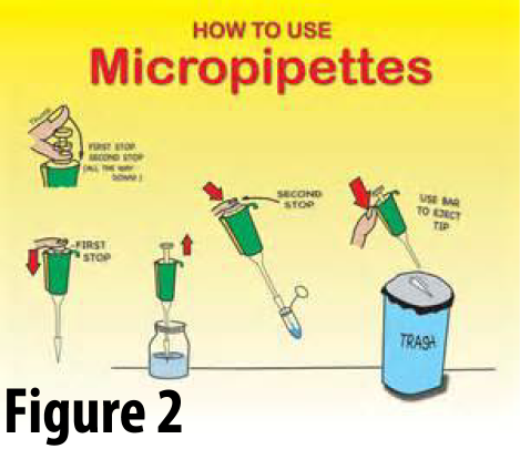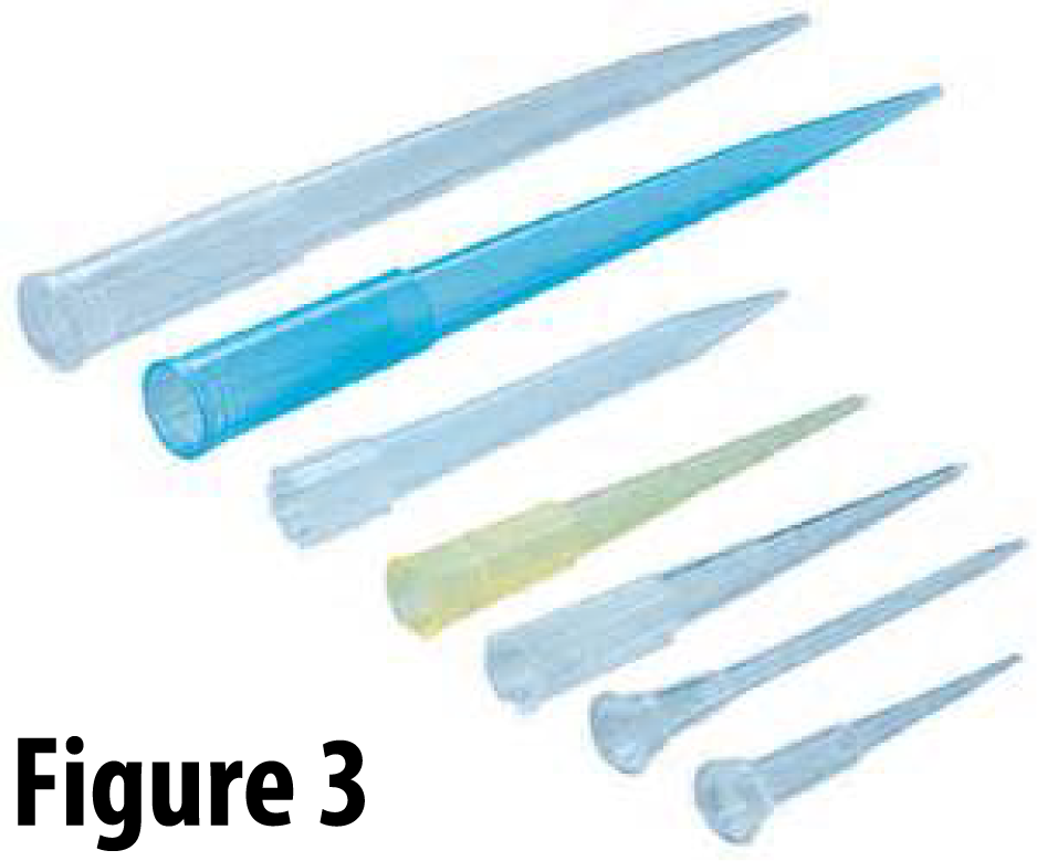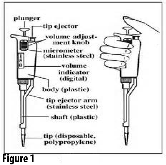 1) 選擇適當的Pipetman:不同型號的微量移液器,各有其吸取體積范圍,請依取用溶液體積取用適當的微量移液器(Figure 3)。